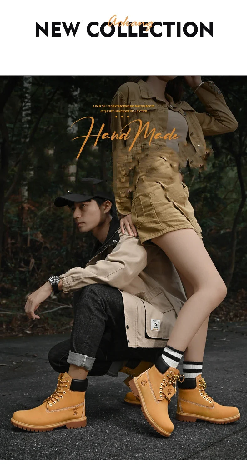 Boots Men High Top Boots High Quality Women Leather Shoes Fashion Outdoor Sneakers Men Lace Up Non-Slip Ankle Boots for Couple