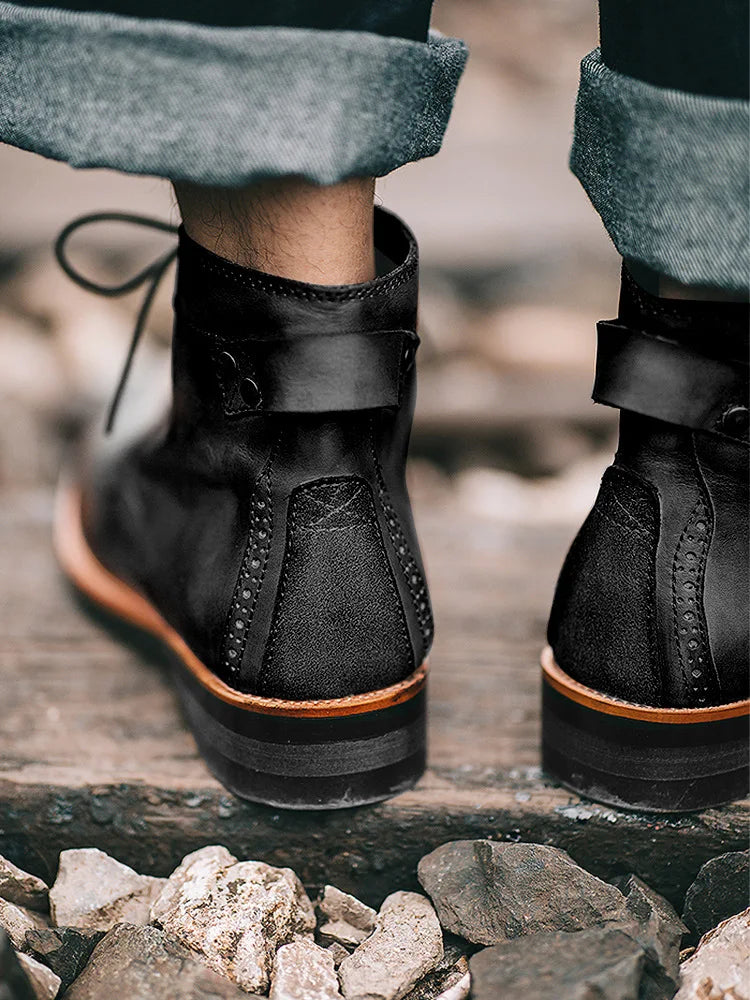 Handmade Leather Men Boots Retro Round Toe Ankle Boots 2025 Autumn Winter Punk Street Style Motorcycle Boots Men Chunky Botines